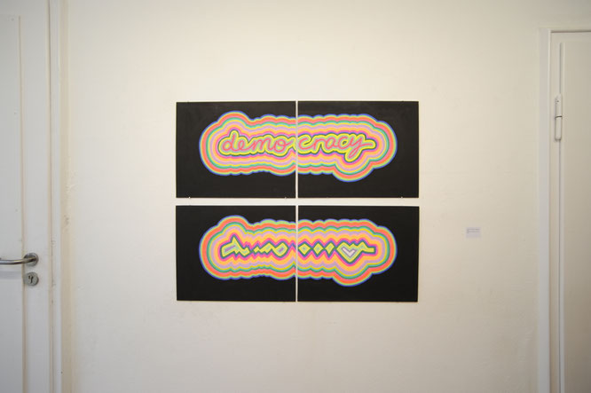 Patent- und eine Maschinenbaufirma, was ihre künstlerische Praxis, die sie 2014 begann, maßgeblich beeinflusst hat. Sprache als Ausdruck und Darstellung von Gedanken scheint für JayOne untrennbar